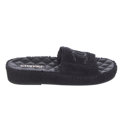 부드러운 테리 클로스 소재로 제작된 샤넬 뮬 슬리퍼입니다.