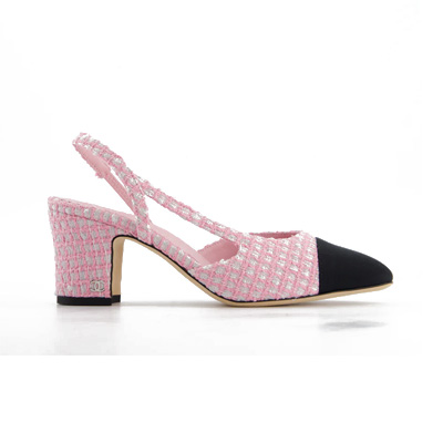 샤넬 트위드 패브릭 슬링백 슈즈 핑크 오프화이트