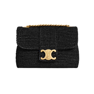라피아와 블랙 카프스킨 조합이 돋보이는 셀린느 미니 빅투아르 백입니다.