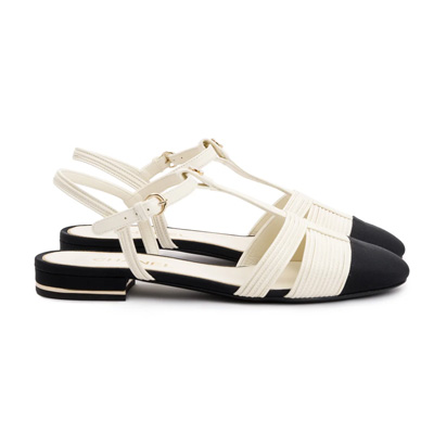 샤넬을 상징하는 인터로킹 CC 로고가 포인트인 슬링백 플랫입니다.
