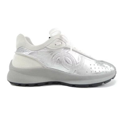 샤넬 라미네이트 송아지 가죽 스웨이드 스니커즈 실버 라이트 그레이 CC