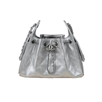 샤넬 미니 25 호보 캐비어 가죽 숄더백 메탈릭 실버