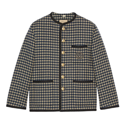 구찌 인터로킹 G 깅엄 울 자켓 베이지 블루
