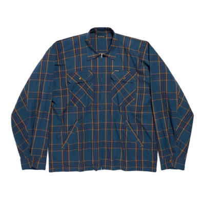 블루와 오렌지 배색이 돋보이는 집업 셔츠입니다.