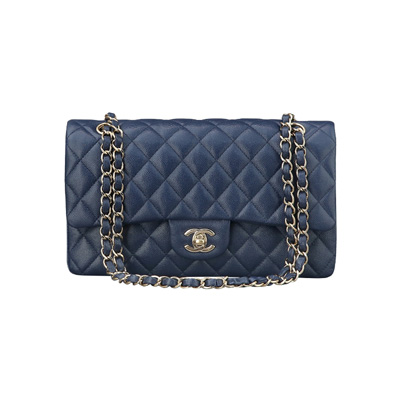 샤넬 클래식 캐비어 미디엄 체인 플랩 백 네이비 실버 A01112