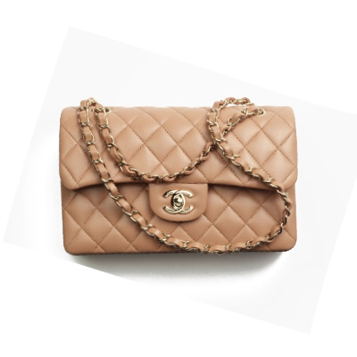 샤넬 클래식 스몰 플랩 램스킨 체인 숄더백 다크 베이지 금장 A01113