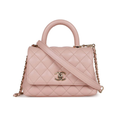 샤넬 미니 코코 핸들 플랩백 캐비어 핑크 라이트 골드