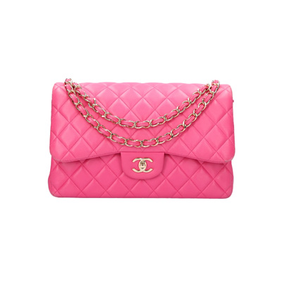 샤넬 클래식 라지 플랩백 레더 핑크 은장 A58600