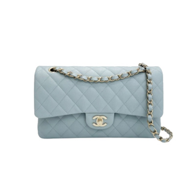 샤넬 클래식 미디움 플랩백 그레인드 램스킨 체인 숄더백 라이트 블루 A01112