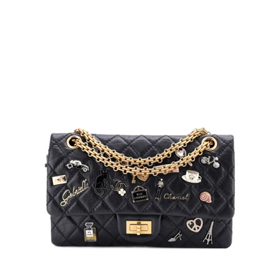 샤넬 리이슈 2.55 225 럭키 참 퀼팅 에이지드 카프스킨 숄더백