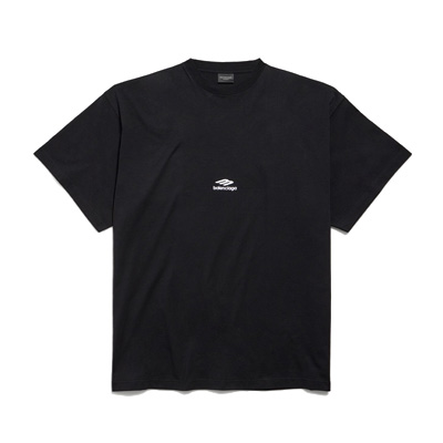 발렌시아가 3B 스포츠 아이콘 오버사이즈 티셔츠 워시드 블랙 화이트 850345TTVK59034