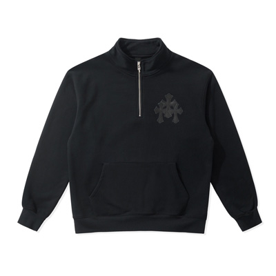 크롬하츠 크로스 레더 패치 하프 집 풀오버