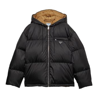 프라다 레나일론 소재로 제작된 다운 재킷 디자인