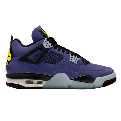NBA 레이커스 컬러에서 영감을 받은 에어 조던 4 모델입니다.