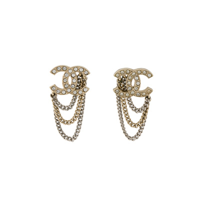 샤넬 크리스털 체인 CC 메탈 이어링 골드
