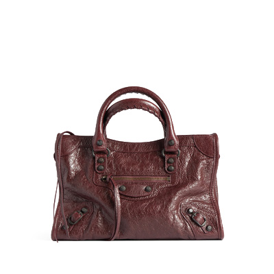 발렌시아가 르 시티 백 스몰 가죽 핸드백 다크 버건디 8114422ABEK6034